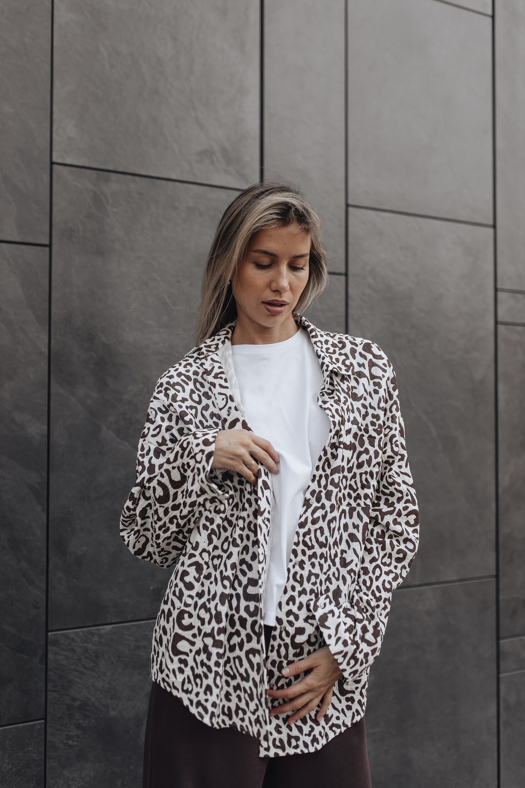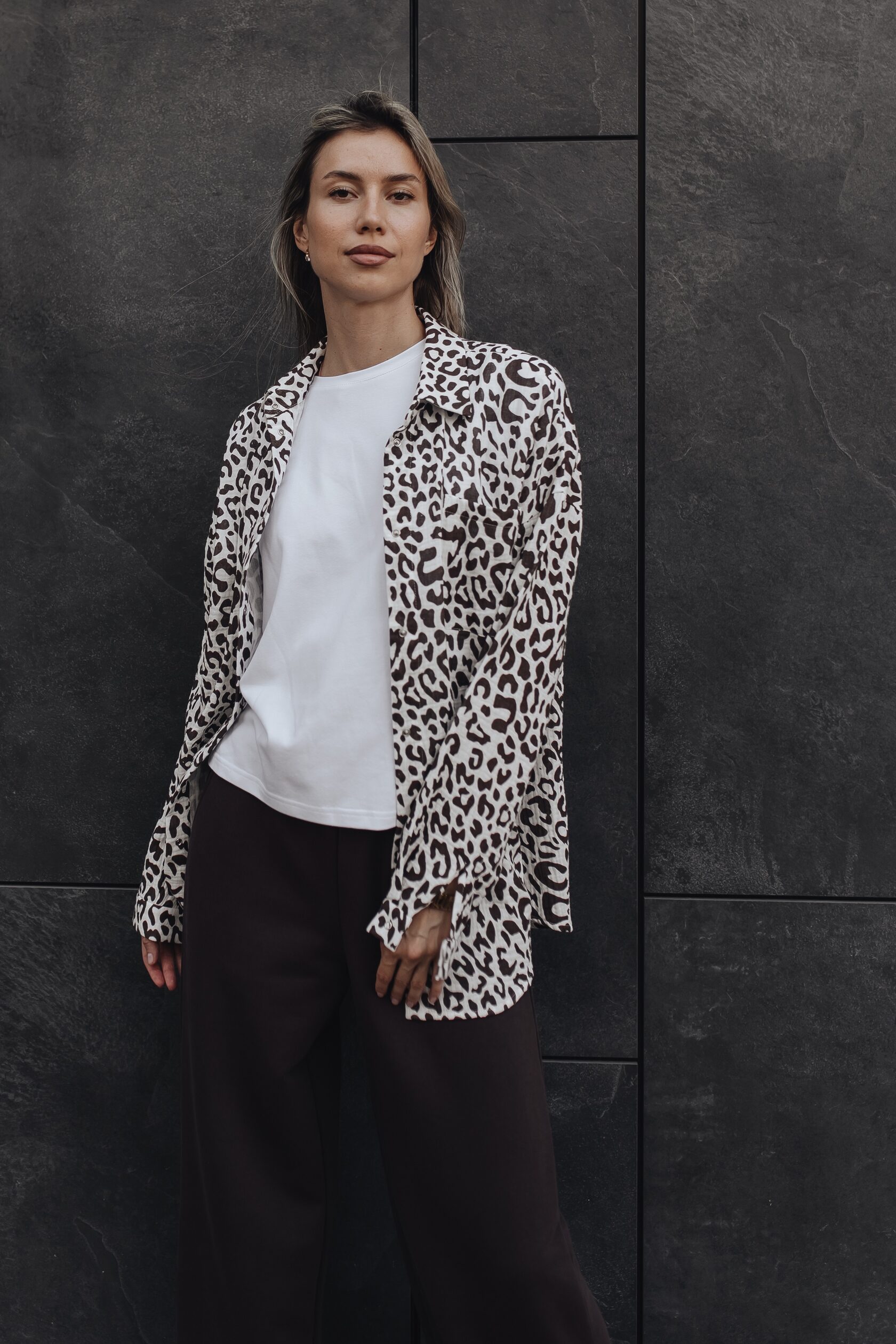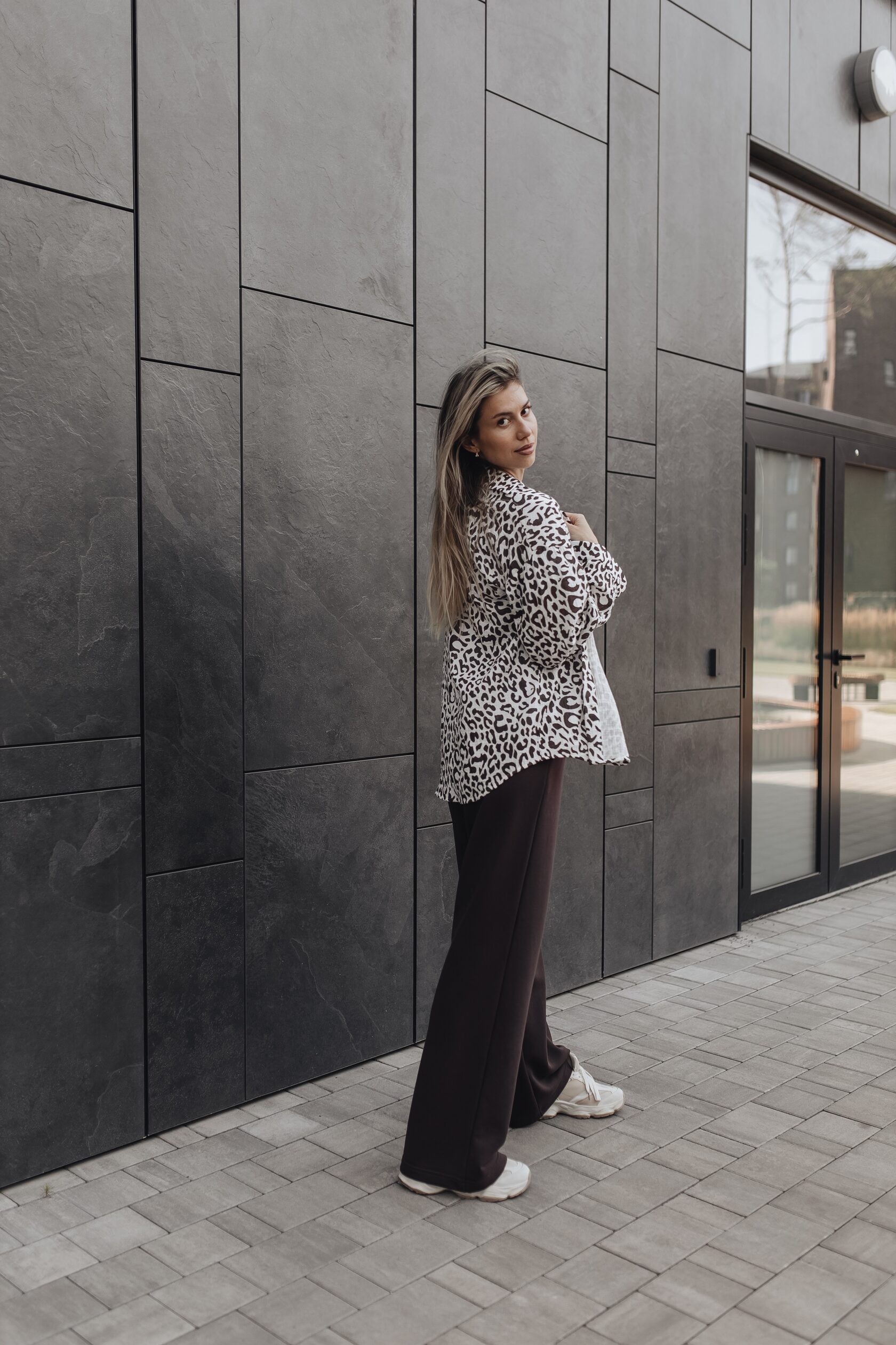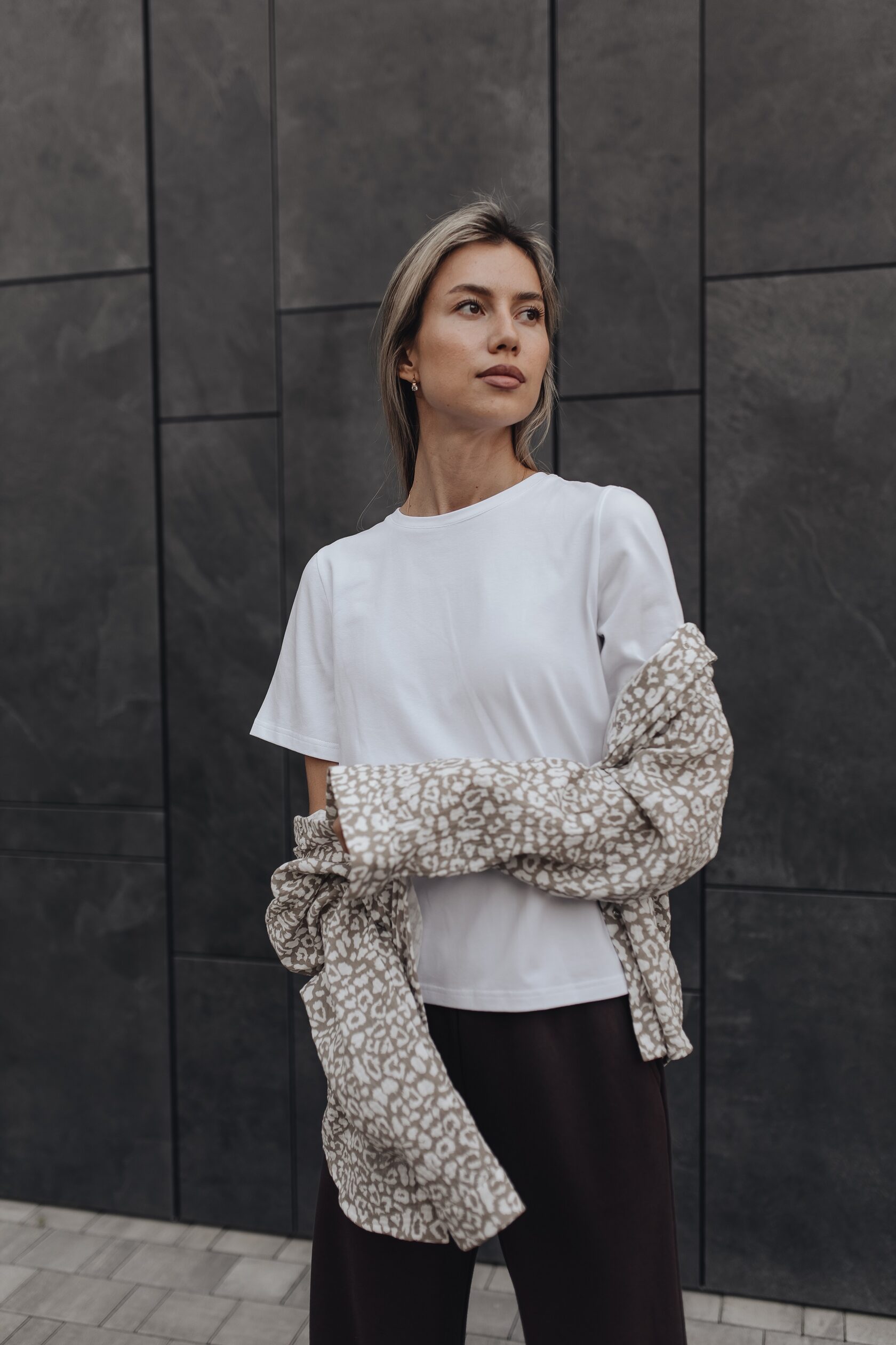 Шикарный комплект на каждый день. Футболка оверсайз черный леопард и брюки спортивные белые. Наш костюм - это тренд сезона, который сочетает в себе комфорт домашней одежды и стиль уличной моды. Он идеально подходит для активного образа жизни, прогулок по городу, путешествий и даже как удобная одежда для дома. Женский трикотажный костюм - идеальное сочетание комфорта и стиля для современной женщины. Этот костюм-двойка станет незаменимым элементом вашего гардероба на все сезоны: от прохладной весны до теплого лета и уютной осени. Максимальный комфорт как для активного отдыха, так и для повседневной носки.