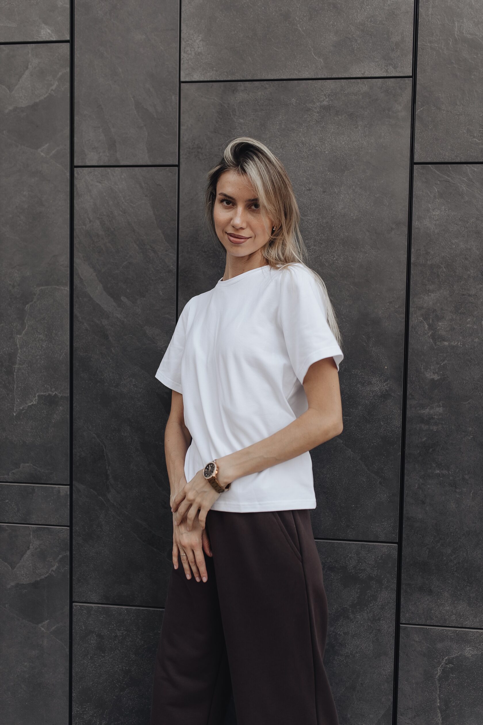 Идеальный комплект на каждый день. Будьте стильными дома в кругу семьи или на стильной вечеринке в кругу друзей. Поперечно-вязаное полотно из натурального хлопка с добавлением не более 5–7 % синтетических волокон в составе. Это легкий и мягкий «дышащий» трикотаж, который не садится при стирке и не вытягивается в процессе носки. Благодаря минимальному количеству добавок материал сохраняет гипоаллергенность и экологичность, но при этом хорошо держит форму.
