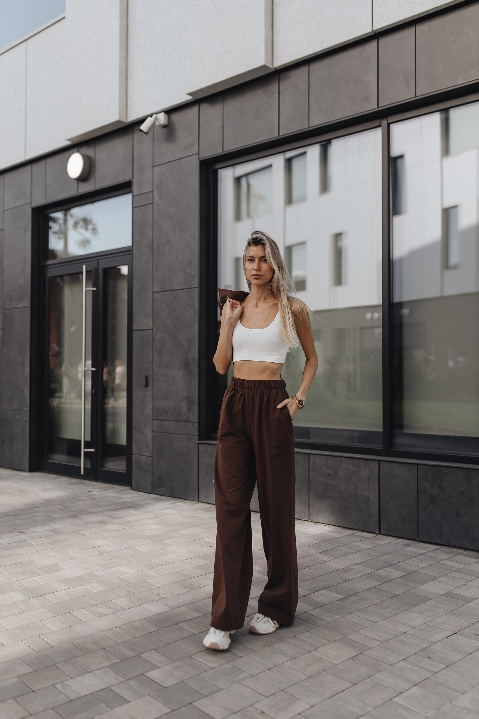 Отличные брюки на каждый день. Будьте стильными дома в кругу семьи или на вечеринке в кругу друзей. Это легкий и мягкий трикотаж, который не садится при стирке и не вытягивается в процессе носки. Благодаря минимальному количеству добавок материал сохраняет гипоаллергенность и экологичность, но при этом хорошо держит форму.