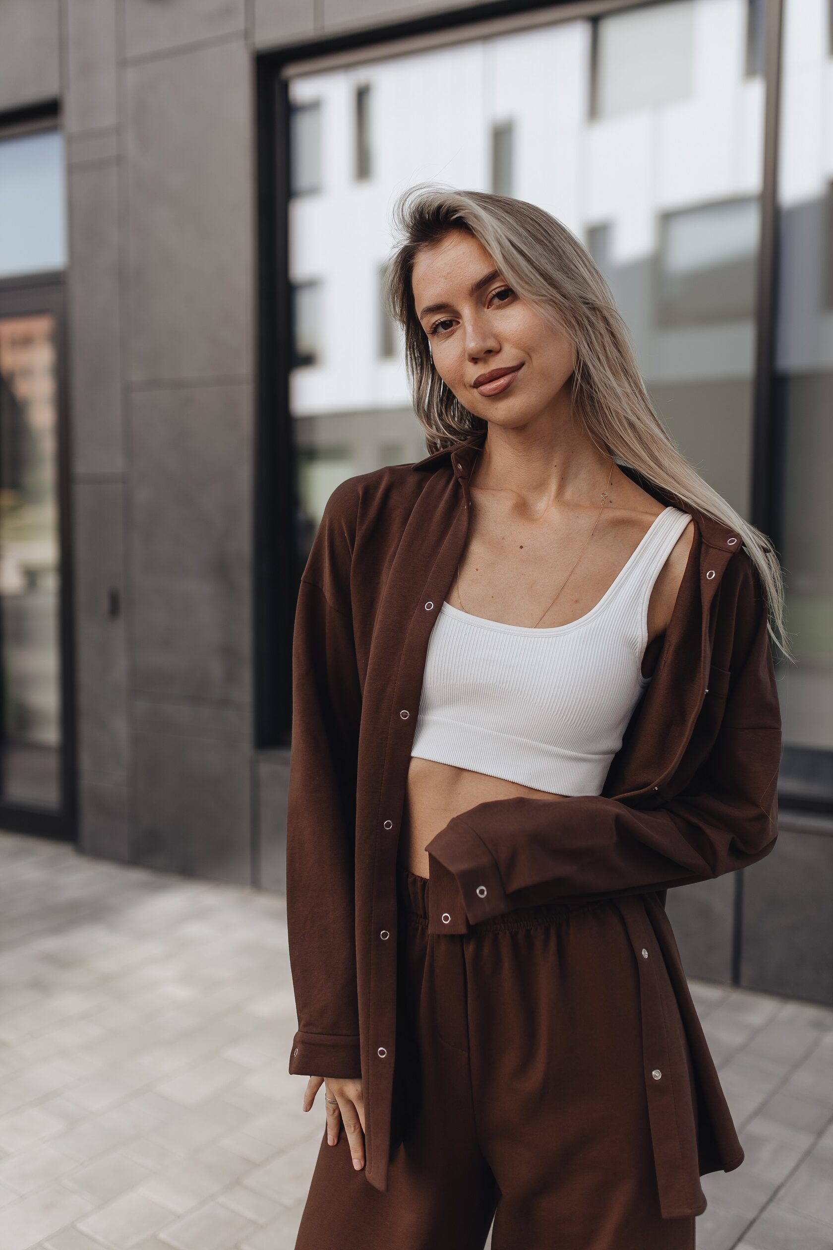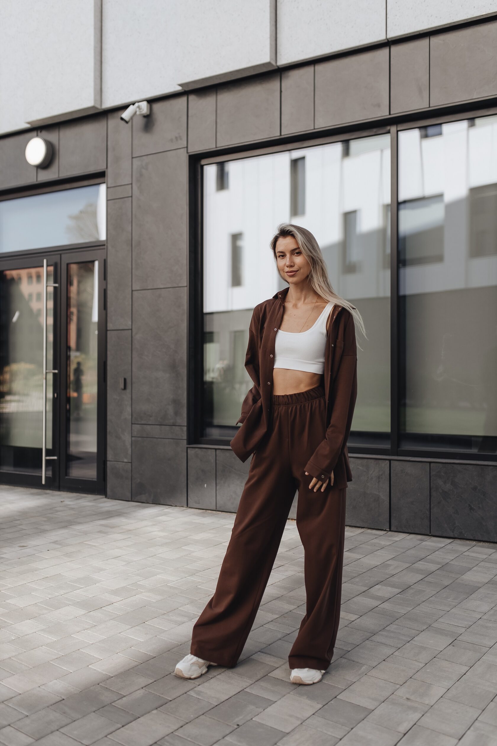 Наш костюм - это тренд сезона, который сочетает в себе комфорт домашней одежды и стиль уличной моды. Он идеально подходит для активного образа жизни, прогулок по городу, путешествий и даже как удобная одежда для дома. Женский трикотажный костюм - идеальное сочетание комфорта и стиля для современной женщины. Этот костюм-двойка станет незаменимым элементом вашего гардероба на все сезоны: от прохладной весны до теплого лета и уютной осени. Максимальный комфорт как для активного отдыха, так и для повседневной носки.