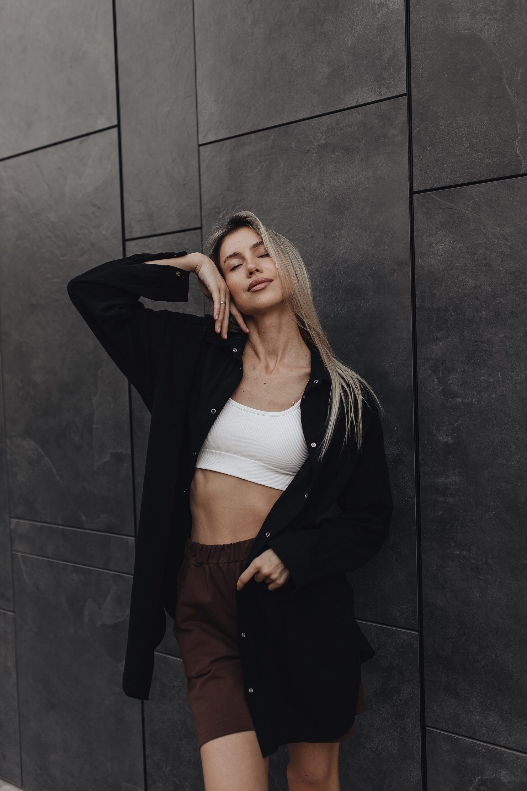 Это идеальный образ для спорт-зала или дома! Хлопковая трикотажная одежда не стесняет движений. Она подойдет как для девушек - подростков, так и для взрослых женщин, включая беременных и кормящих мам.